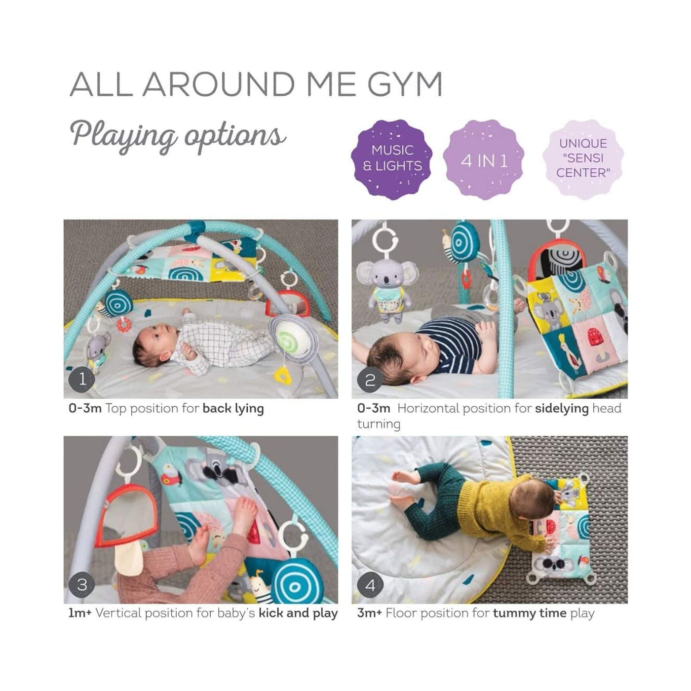 • The unique “Sensi-Center” encourages the baby to lie in four different poses – 1. Top position for baby’s back lying. 2. Horizontal position for side-lying and head-turning. 3. Vertical position for baby’s kick and play. 4. Floor position for tummy time play.