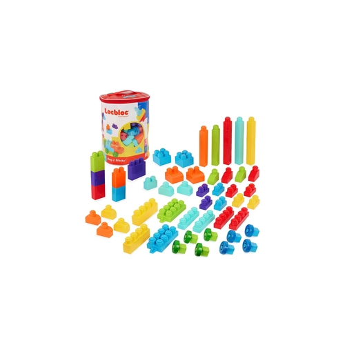 The ideal building block system for toddlers! Build as high as your imagination can soar, then toss all the blocks back in the bag o’ blocks for storage that’s just like magic. Ready to start building? This bag is stuffed with classic construction play possibilities! This set is designed specifically for toddlers with bricks that are easy to hold, stack and take apart.