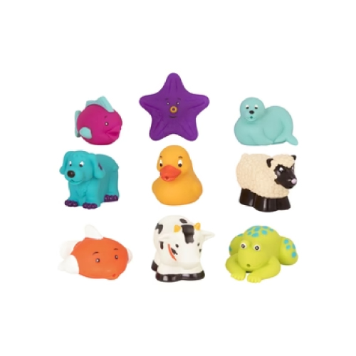 Turn bath time into splash time with the Battat Bath Buddies. 9 animal bath squirters, made of soft and safe plastic, and just the right size for little hands to grab. Colourful and easy to squeeze, they sure help improve hand-eye coordination and promote imaginative play during bath time. These squeezy animal squirts also introduce little ones to basic concepts like cause-and-effect, accuracy and fine motor skills. With the bright colours and the attention to detail, these little animal tubbies are a must-have for bath time.