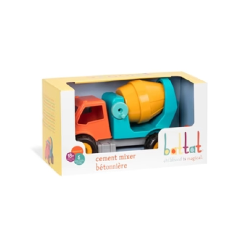 Create endless possibilities while bringing back some of your own childhood memories with this Cement Mixer from Battat. This heavy-duty construction vehicle features bright colours, moving parts and soft rubbery wheels that won’t scratch your floor. It also comes with a vintage look and a friendly truck operator. It’s easy to check on the engine when you can lift the cabin. Turn and mix the imaginary cement until it’s ready to pour. Designed with your little one in mind; easy to grab and drive around the construction ground, this cement mixer truck for toddlers is heavy-duty fun for itty bitty hands. Parents will love watching their tiny foreman load up the mixer and turn the crank until the perfect mixture. This plastic toy truck is easy to clean, even after a messy adventure in the mud! Battat offers a whole collection of sturdy construction vehicles: Garbage Truck, Fire Engine, Dump Truck or Front-End Loader… Promotes hands-on play, also helps with hand-eye coordination and fine motor skills. All Battat products meet or exceed EU, U.S. and Canadian safety standards. So, whether in the sandbox, the beach or the playroom, vroom in the fun with this collection of working vehicles from Battat.