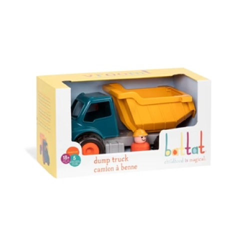 Bring back childhood memories and create new possibilities with the Battat Dump Truck. This heavy-duty construction truck comes with a vintage look and a friendly truck operator. It also features bright colours, moving parts and soft rubbery wheels that won’t scratch your floor. Little ones will enjoy checking on the engine and unloading the truck’s dump box. Easy to grab and drive around, this dump truck for toddlers is heavy-duty fun for itty bitty hands. Designed with your little one in mind; watch him load up the dump truck and move stuff around the living room. Marbles, treasures or pebbles; also a great way to serve snacks! This plastic toy truck is easy to clean, even after a messy adventure in the mud! Battat offers a whole collection of construction vehicles: Garbage Truck, Fire Engine, Cement mixer or Front End Loader… Collect them all! Promotes hands-on play, also helps with hand-eye coordination and fine motor skills. All Battat products meet or exceed EU, U.S. and Canadian safety standards. Just vroom in the fun, whether you’re in the playroom or in the sandbox.