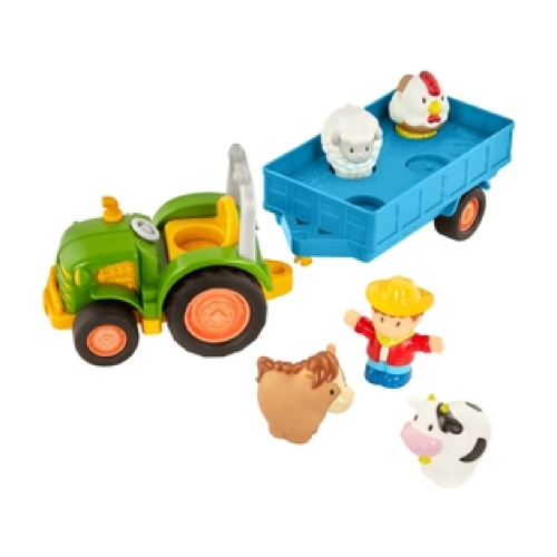 - 7-Piece Set: This farm toy set comes with a tractor, trailer, 4 animals, and a farmer.
