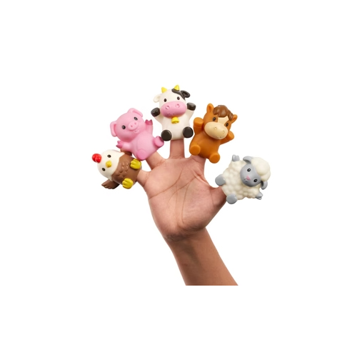 Fingers of Fun- Farm Animals. A selection of finger puppets representing our most loved farm animals. Each has an elastic fitting inside to keep them on your finger and will give hours of fun and creative play.