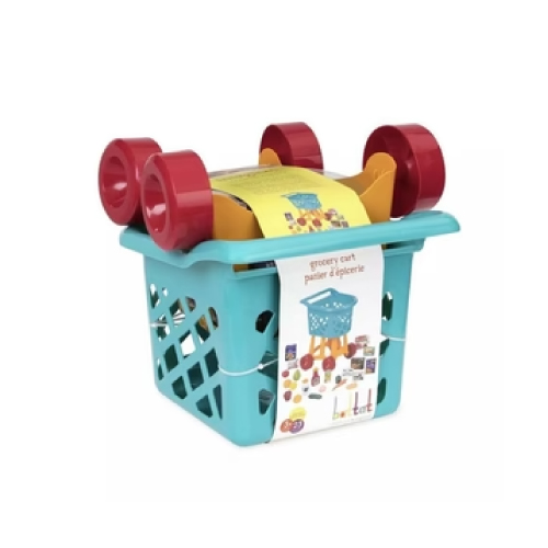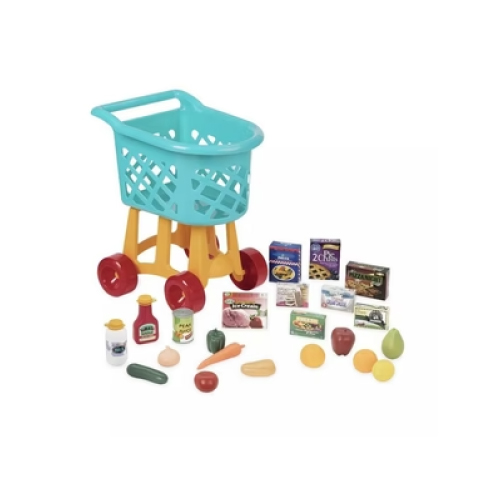 The Battat Grocery Cart is filled with fun… and everything a little foodie needs to create the best meals ever imagined. Pretend grocery shopping with this sturdy cart and 22 colourful play food items. Fill up your toy basket with veggies, dairy, pasta, fruits, juice and more. Stable and easy to push, this grocery cart is perfect for toddlers, as the handle rises about 20 inches from the floors. The smooth motion of the moulded wheels makes it sturdy and stable. The perfect tool to teach toddlers about healthy food choices and nutrition. Pretend play toys are an essential part of childhood as it helps with social skills, curiosity, concentration and many more. So, grab what you need to mix it up, saute it up, cook it up or bake it up… And just put it in the cart! This shopping cart is the perfect addition to any toy kitchen set!