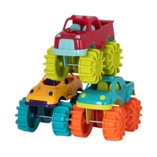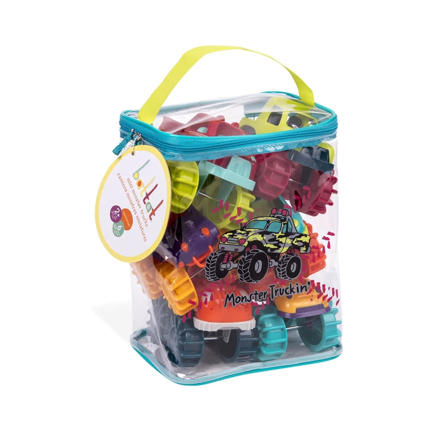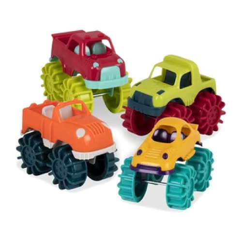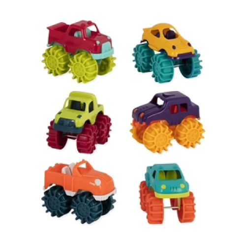 Heavy-duty fun for teeny tiny hands. Watch your 3-year-old make his big entrance and wow the crowd (that’s you mommy) with a crazy wheelie or the classic doughnut. Make play even more fun and build an obstacle course with the coffee table and a couple of pillows. Or dig in a funky dirt road in the sandbox! Whether indoor or outdoor, just vroooooom in the fun with this set of 6 Mini Monster Trucks from Battat! There’s plenty for everybody, so share the fun! Perfect set for a playdate or even better, for birthday party favours. This toddler playset comes with 6 mini monster trucks that are easy to grab and drive around the playroom… or the sandbox. The textured wheels will create beautiful designs in the sand as you drive the mini truck around. This playset of 6 mini monster trucks come in a convenient storage bag; perfect beach toys for your next trip. Made of safe and sturdy plastic, these toy trucks for toddlers, just like all the Battat toys meet or exceed the highest safety standards. Each toy truck is approximately 11cm long. Each 4X4 mini toy truck is recommended for 2 years and up.