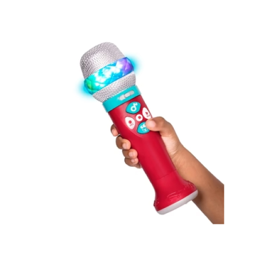 Watch your superstar as he wows the crowd (that’s you, mama). Grab this sing-along microphone and spin the light-up ring for a flashy, colourful light show. Swing the microphone in the air to hear the crowd cheer. Choose from 5 pre-recorded songs or connect this toy mic to your smart device via Bluetooth! This play microphone also features a whacky voice changer. Press on the whacky face to go from low to high pitch! Control the tempo and the volume at the touch of a button. Record and playback your amazing hit performance. This Bluetooth microphone is easy to grab and hold, and its functions are easy to control. Karaoke for kids has never been so easy with this toddler microphone. Pretend play, such as singing, improves confidence, as well as social and motor skills. Made of safe and worry-free materials, this toddler microphone meets or exceeds CAN, U.S. and EU safety standards. Now, let the music do the talking!