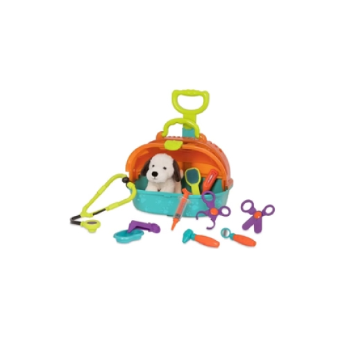 Keep your precious puppy happy and bring him with you wherever life (well, more like mom and dad) takes you! The Battat Pup & Go Vet Set is a portable animal clinic kit that comes with 10 vet toys, 1 plush puppy and 1 rolling puppy crate. A complete toy vet set, easy to grab and roll anywhere, because love is the 4-legged word. 10 easy-to-grab vet toy tools that fit just right in teeny tiny hands. The rolling pet carrier is easy to open and close and doubles as storage; it also features an extendable handle. Pretend play toys like this toy vet kit help toddlers with empathy and social skills; it also improves hand-eye coordination.
