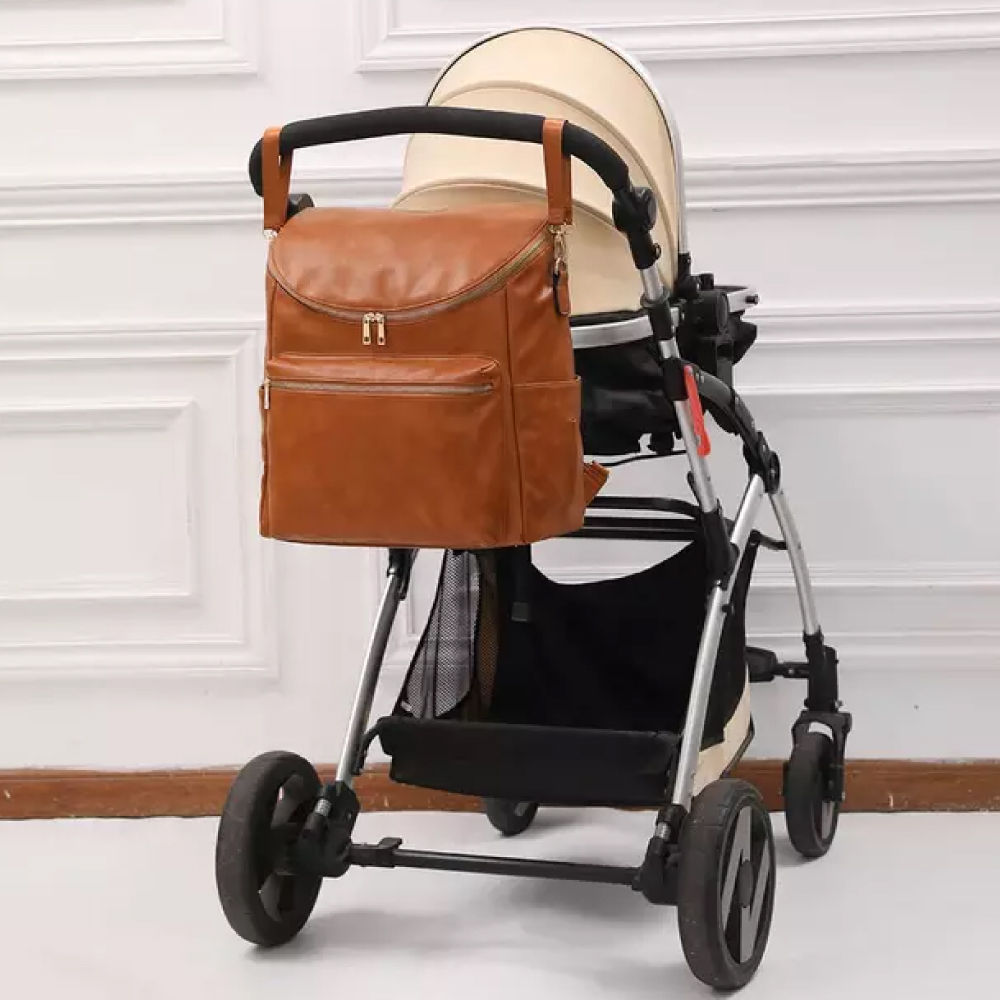 This premium pu leather diaper bag is made of printed soft vegan leather