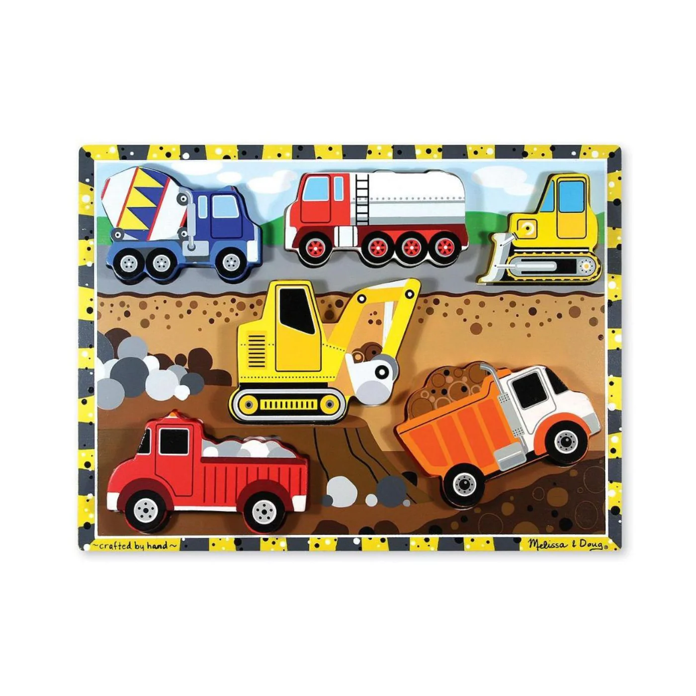 - 6-piece wooden puzzle with a building-site theme.