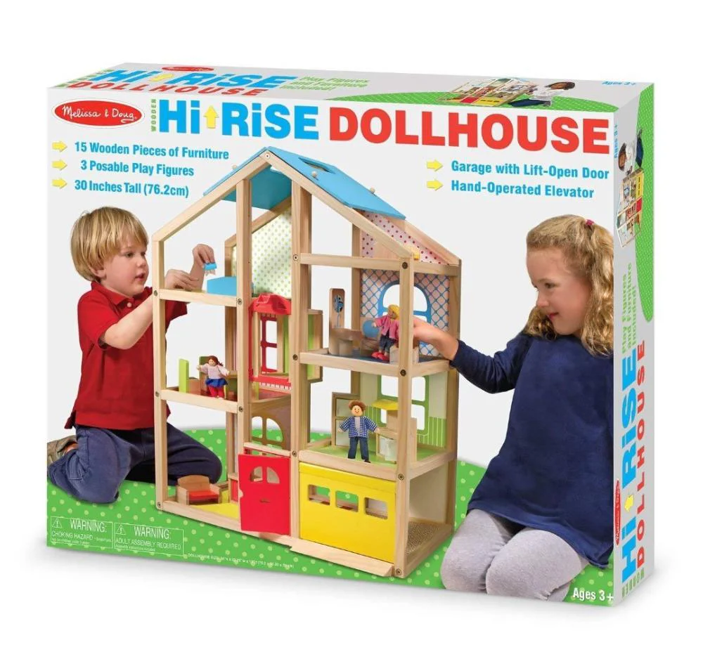 Going up? Suitable for all 1:12-scale dolls, our newest play house invites pretend-play families to pull into the garage, ride in the elevator, and feel right at home in this modern home. Fresh, gender-neutral colors and patterns add a lively edge to the natural-wood frame, and open sides make it easy to access every room with ease – so it’s easy to share the fun with brothers, sisters, and friends! Comes with three play people and 15 pieces of furniture. Also available: Road Trip! Car & Posable Passengers Set, custom made to fit the ground-floor garage perfectly.