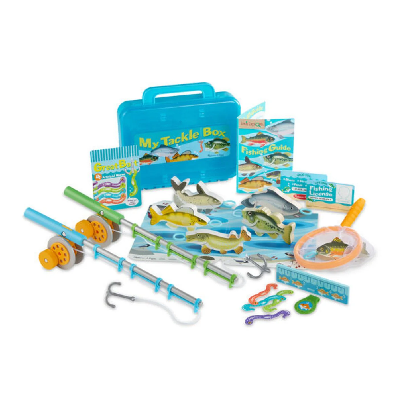 - Add to the fishing experience with fish guide and activity cards, ruler for measuring catches, double-sided mat for warm or cold weather fishing, durable tackle box to store supplies, collectible medallion