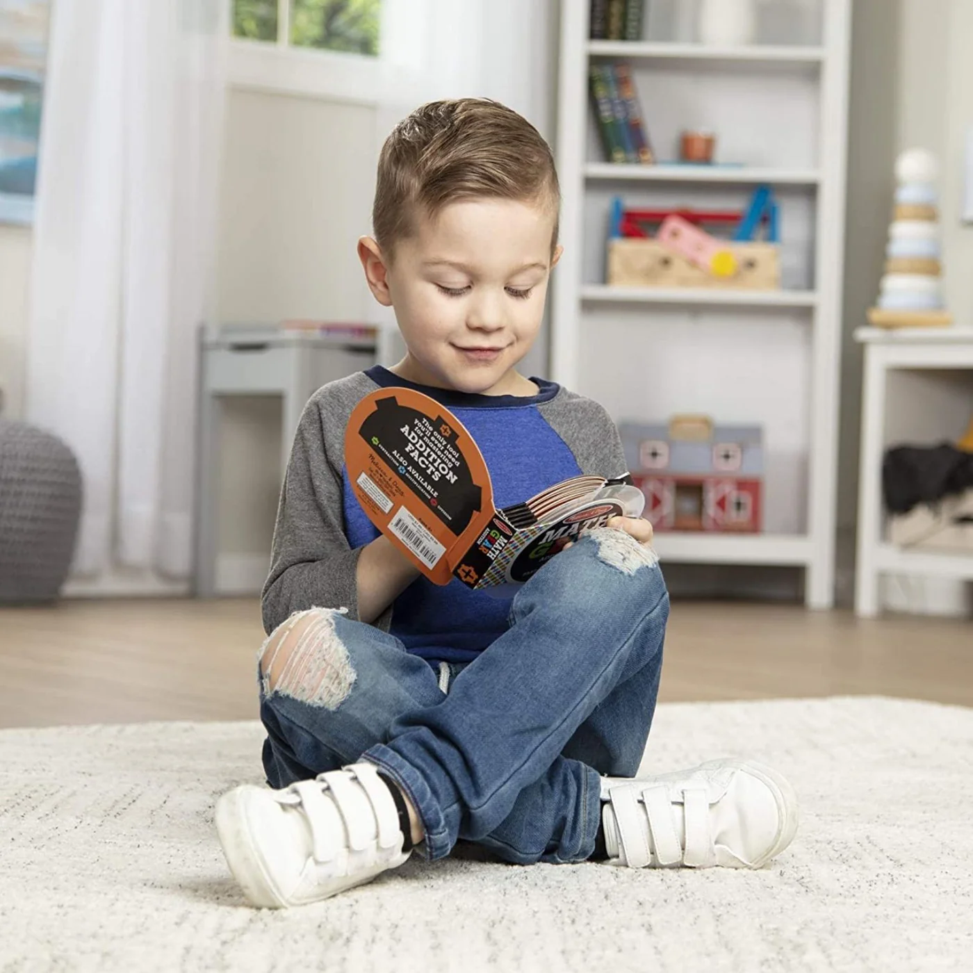 - Roll the wheel to display a math problem, solve, then lift the flap to check the answer