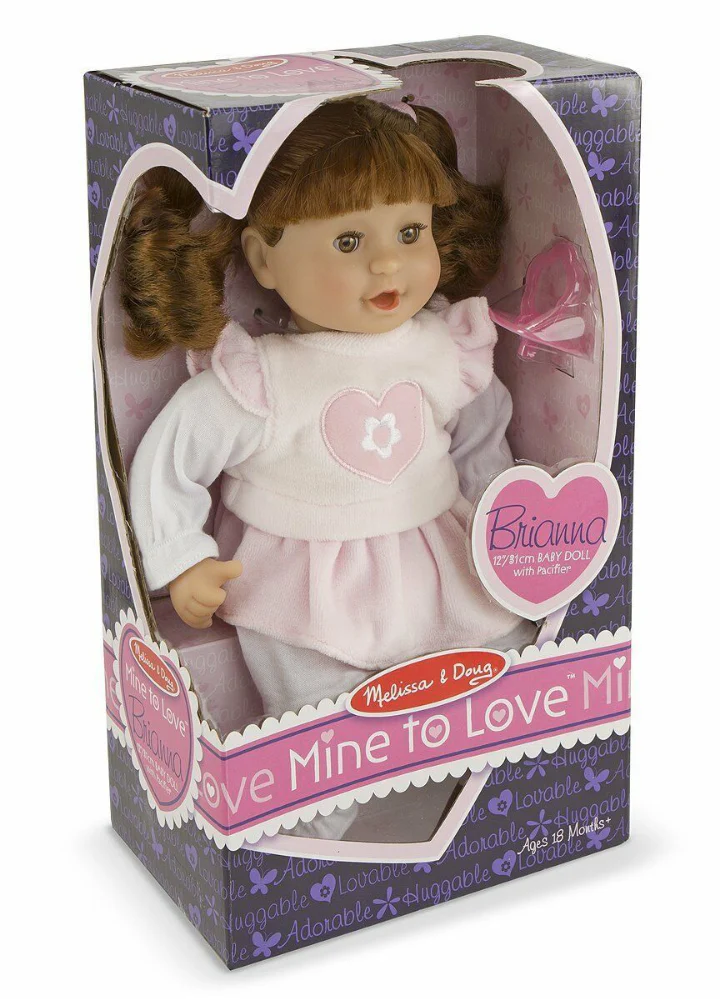 This sweet smelling, soft-bodied baby doll is just waiting for someone to love her! With her open and close eyes, and shiny brunette hair, Brianna comes in a removable two-piece outfit with a charming embroidered heart and flower. She can suck her thumb or her included pacifier, lie down or sit up…just like a real baby!