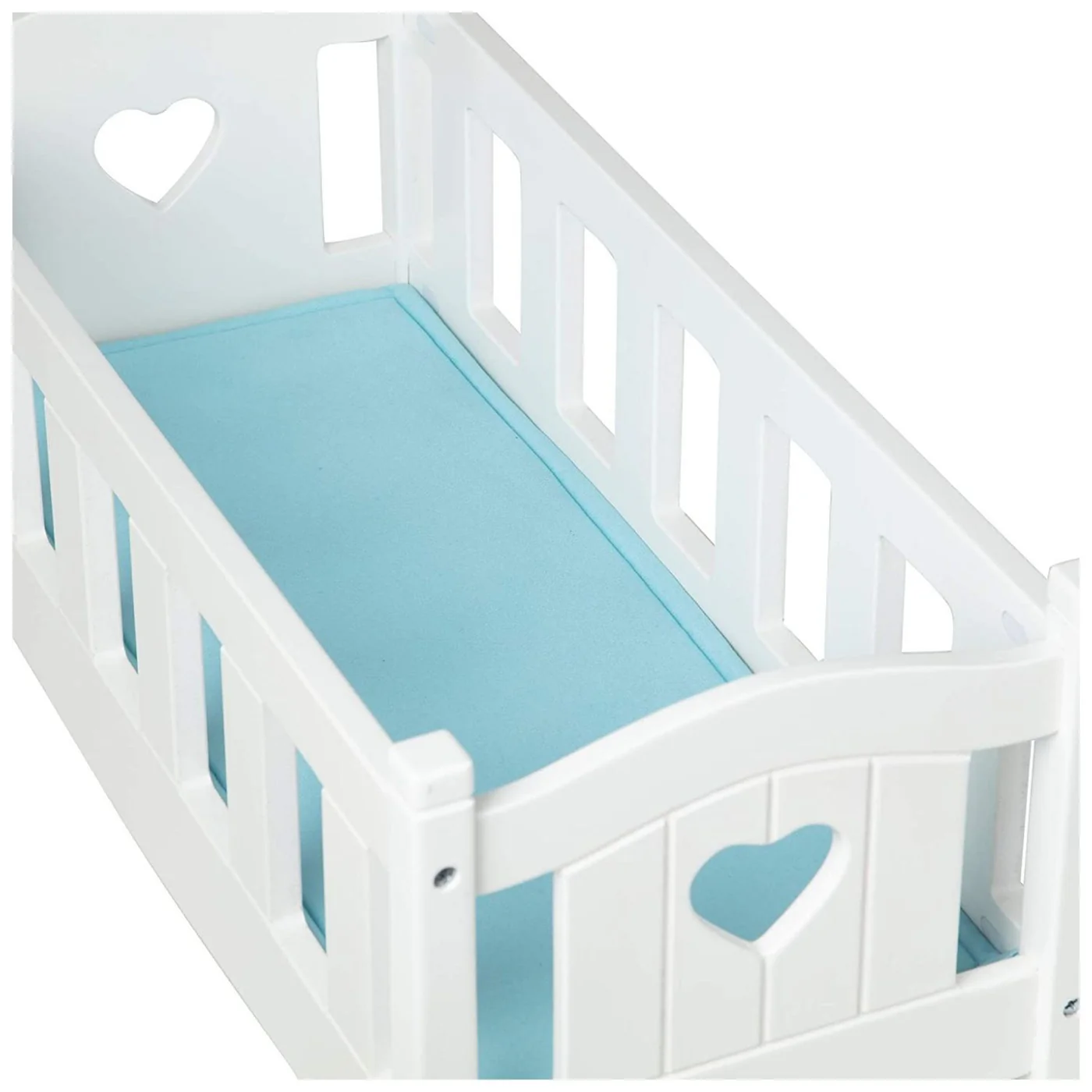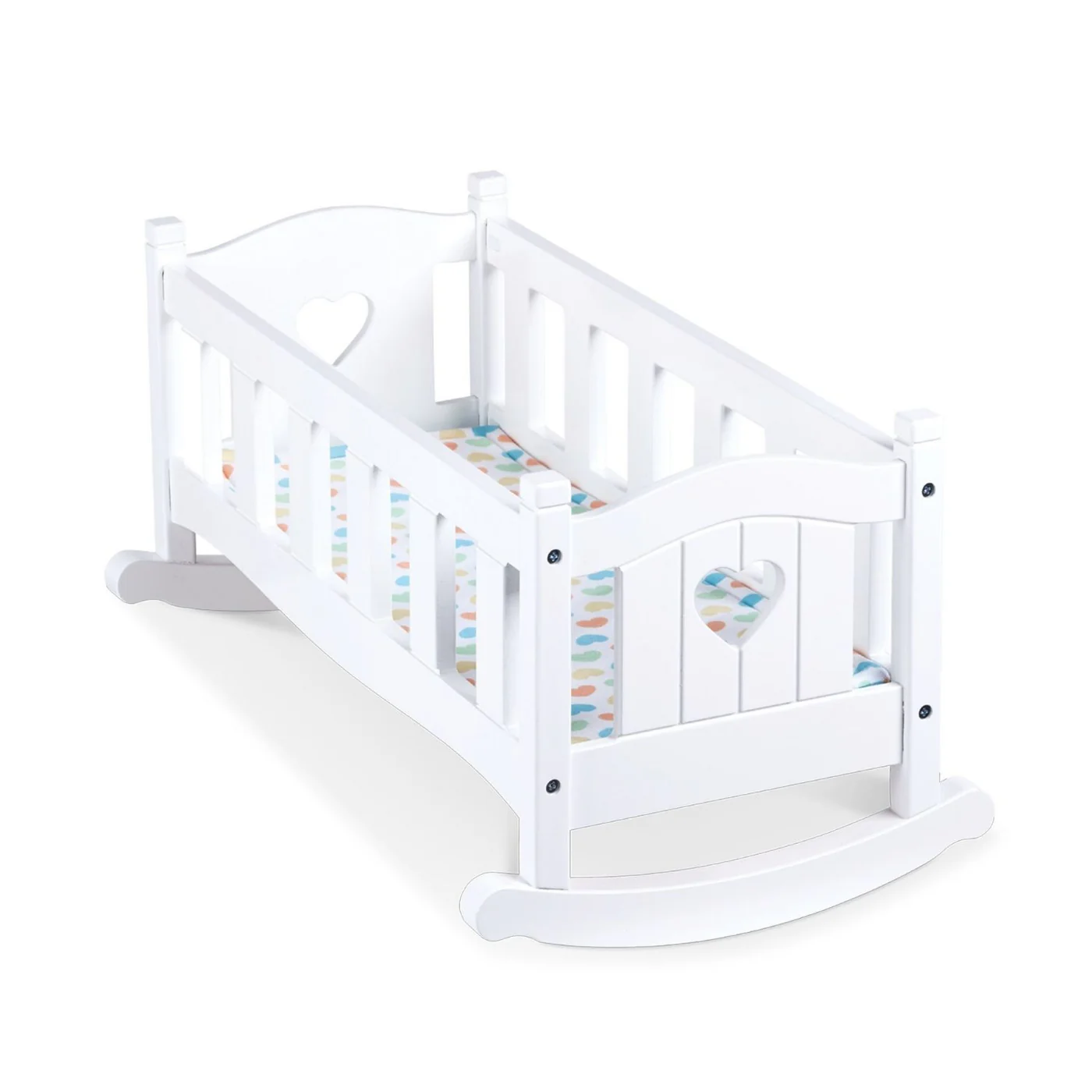 Rock to sleep favorite dolls and stuffed animals in this realistic and classically styled wooden cradle that suits any décor! Made to fit dolls up to 20 inches tall, the durable white rocking cradle with a wipe-clean surface stands approximately 10 inches tall. Clear instructions make the cradle easy to assemble with just a screwdriver (not included). Mine to Love® dolls and accessories encourage empathy and help kids express themselves as they explore grown-up roles and responsibilities. A child’s confidence and self-esteem blossom and grow with each nurturing moment of imaginative play!