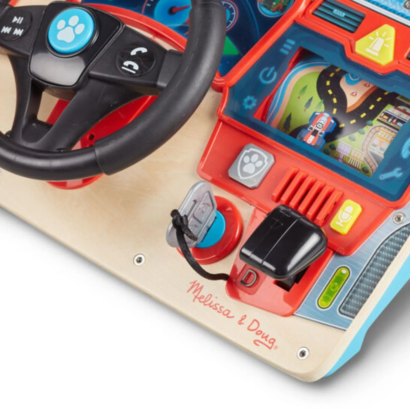 Rev up playtime and have hours of imaginative adventures in the driver’s seat with the PAW Patrol™ pups! Slide one of the three double-sided mission cards into the windshield of the wooden dashboard and set the dial to show who needs help. Press buttons to choose the pups for the mission and hear multiple phrases for each, then press the paw print “mission start” button to hear Ryder give mission instructions based on the pups chosen for the job – there are hundreds of possible combinations, and kids can choose to hear him in English, French, or Spanish! Turn the removable key to hear the engine rev and shift the gear to “D” to start the scrolling GPS – turn the steering wheel to keep the vehicle on the GPS track! Other features of the interactive dashboard include a horn that beeps, a siren button, blinkers that click, and a microphone for voice recording and playback! PAW Patrol™ is always ready to help, inspiring preschoolers with a blend of teamwork, adventure, and humour as they develop social, emotional, and developmental skills through play.