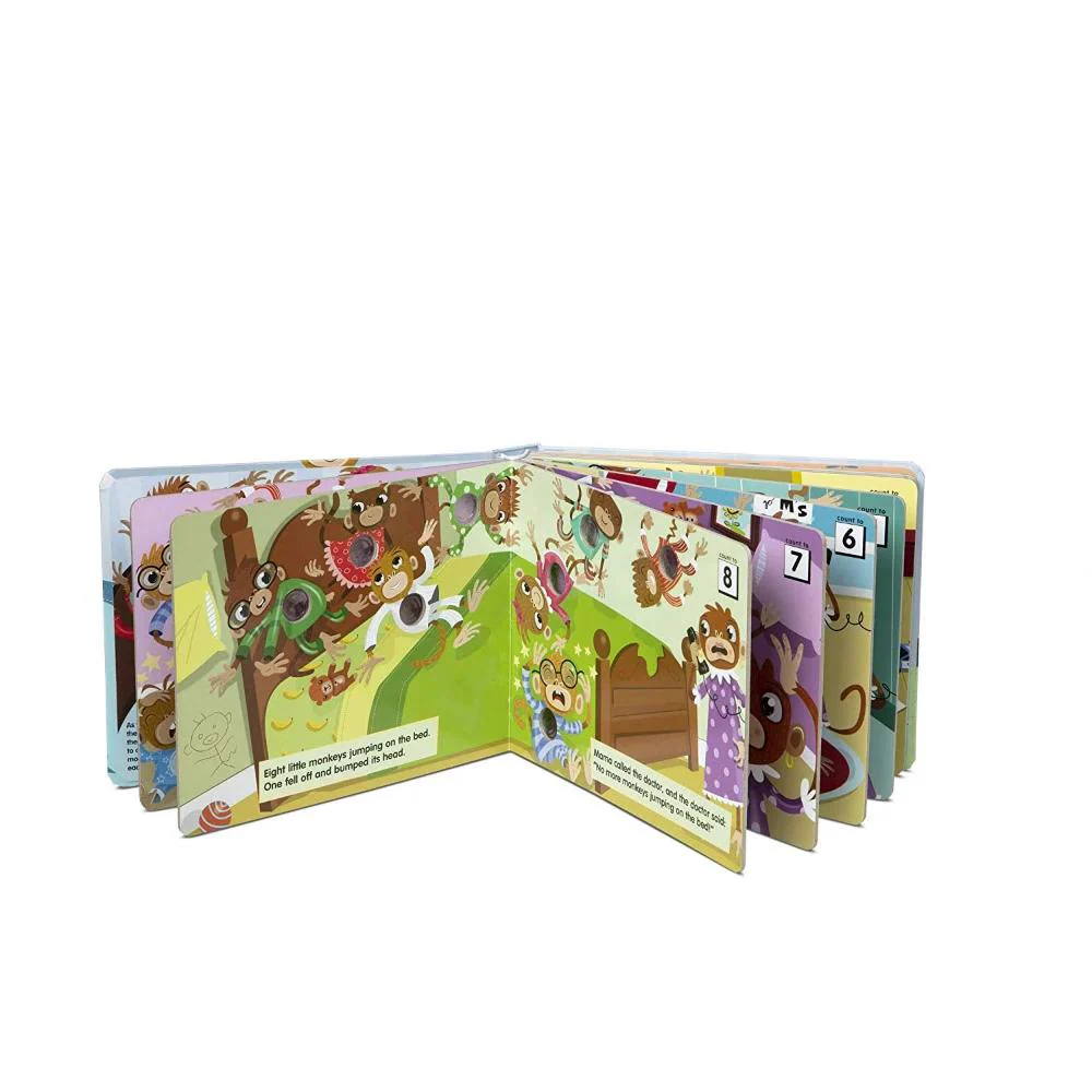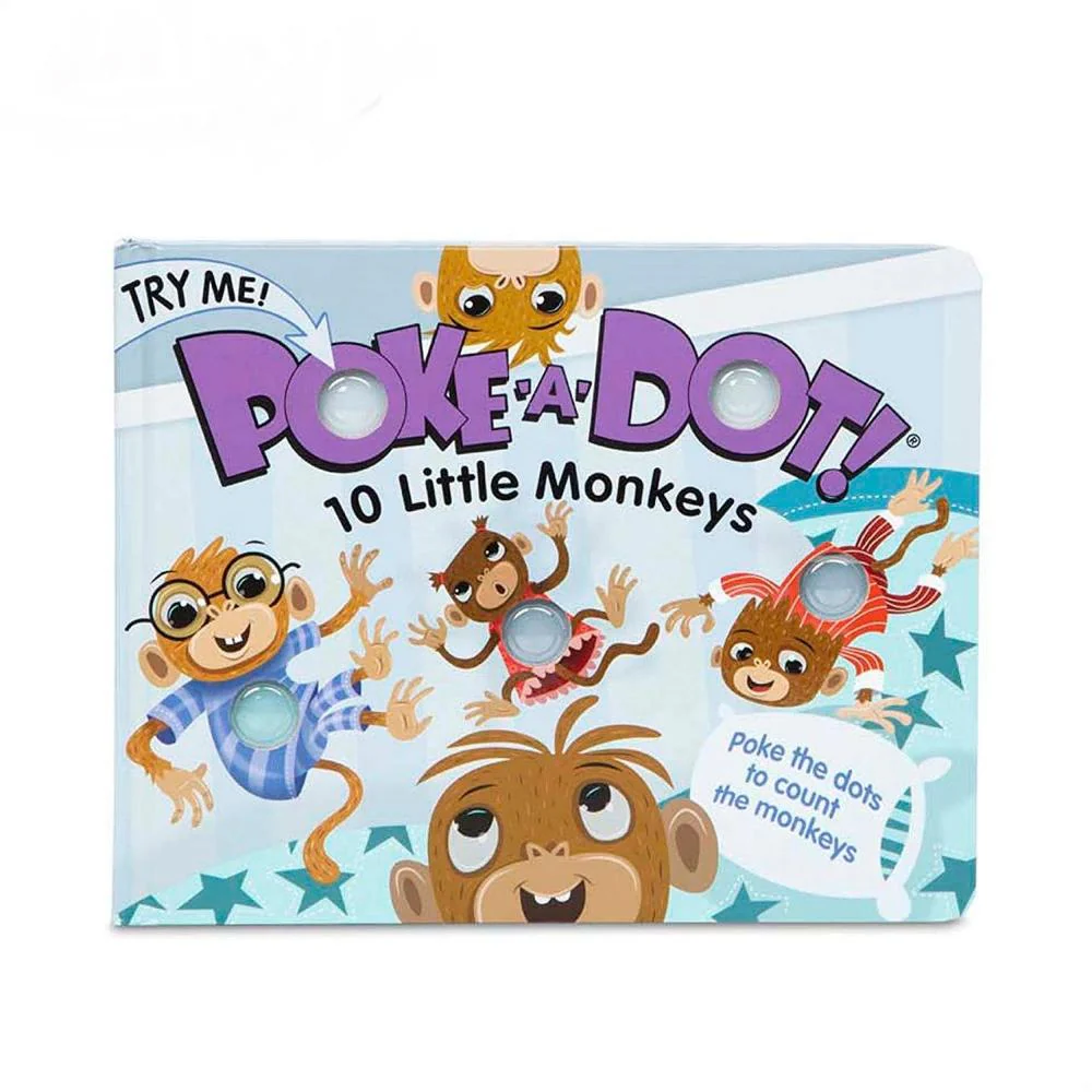 Monkeys can’t stop jumping and kids can’t stop popping! Poke the irresistible click-to-count buttons to hear satisfying “clicks” and “pops’ as you count all the little monkeys! This sturdy 20-page interactive board book invites kids to pop along as they count all the little monkeys jumping on–and falling off–the bed! Poke-a-Dot® books help encourage language development, counting, and fine motor skills. Patented Pop-a-Tronic technology lets kids discover different popping sounds by poking the dots from the front or the back, with pages raised or flat!