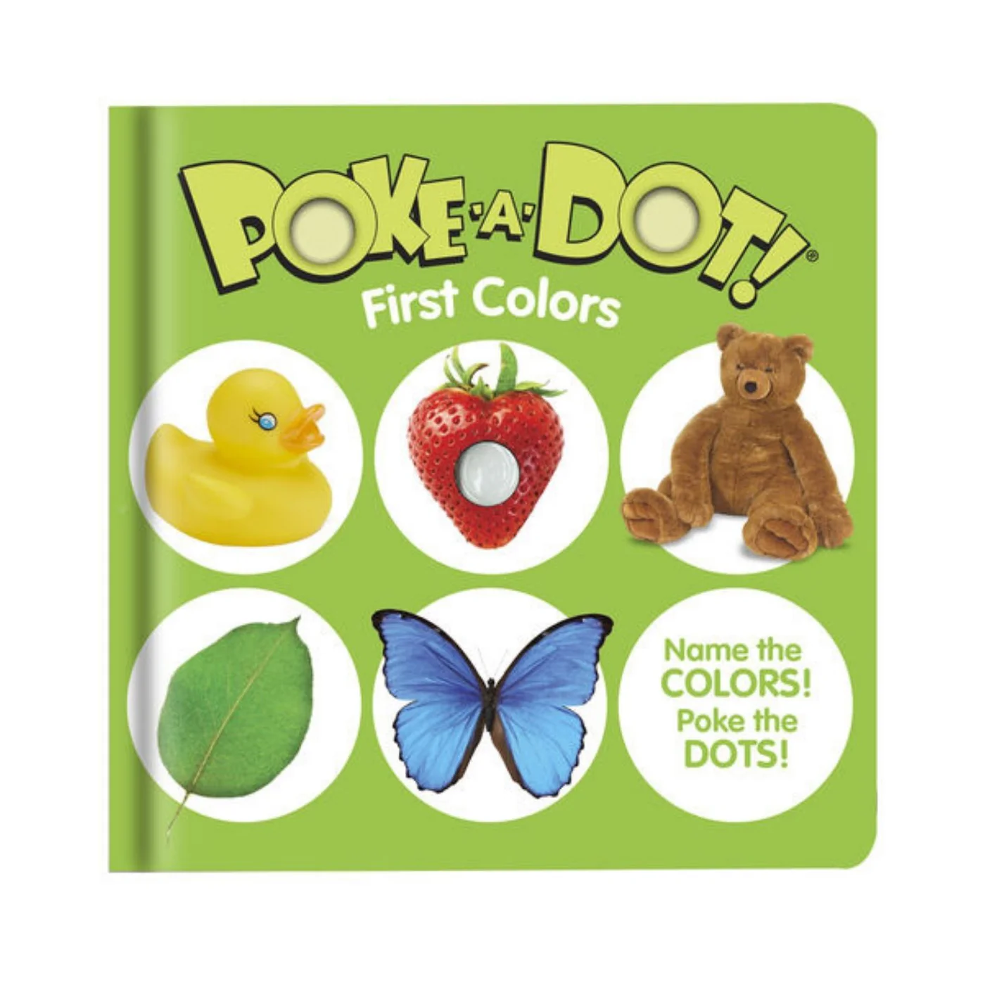 From an orange carrot and a red strawberry to a pink flower and a green leaf, kids will love discovering all the colors of the rainbow in everyday objects! See the pictures, name the colors, and poke the irresistible buttons on every page to hear satisfying clicks and pops. This sturdy 10-page interactive board book invites kids to pop along as they explore full-color photographs of familiar objects and their colors. Poke-a-Dot books help encourage language development, shape and color recognition, and fine motor skills. Patented Pop-a-Tronic technology lets kids one and older discover different popping sounds by poking the dots from the front or the back, with pages raised or flat!
