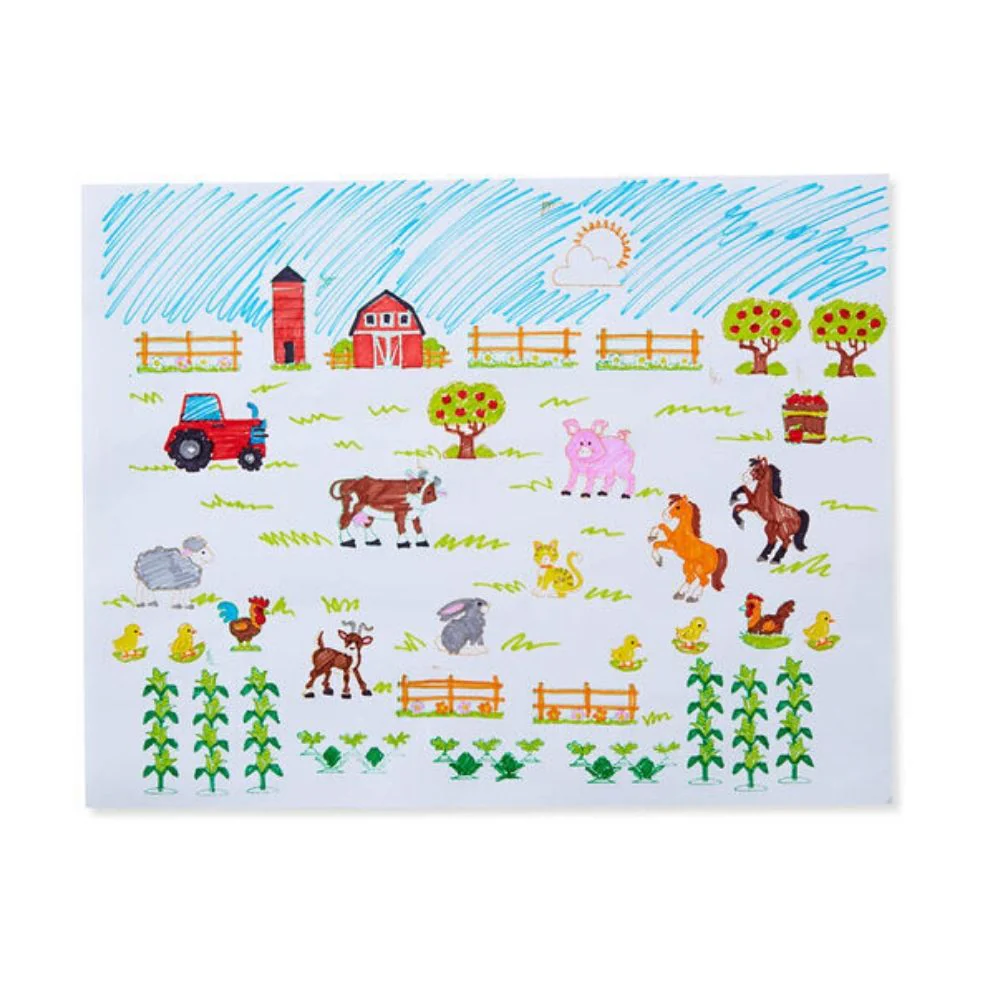 A barn, tractor, sheep, bunny, pig, and a barn’s worth of animals and crops come in this color-in stamp set for kids! This extra-large set of wooden stamps makes it easy to create an exciting storyline or a color-in scene: It includes 20 rubber-faced, wooden-handled outline stamps and a two-color stamp pad with brown and green washable ink. Five colored pencils coordinate with the farm theme to add details and color in the barnyard scene. It’s a complete arts & crafts activity and storytelling kit in one!