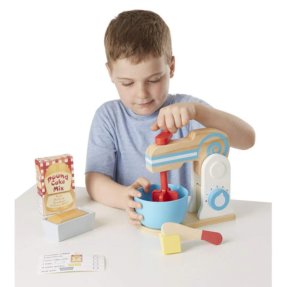 What do you get when you mix pretend play with realistic details? Delicious amounts of fun! The Wooden Make-a-Cake Mixer Set from Melissa & Doug is a fabulous addition to any play kitchen, inspiring young chefs to discover the joy of baking through imaginative play.