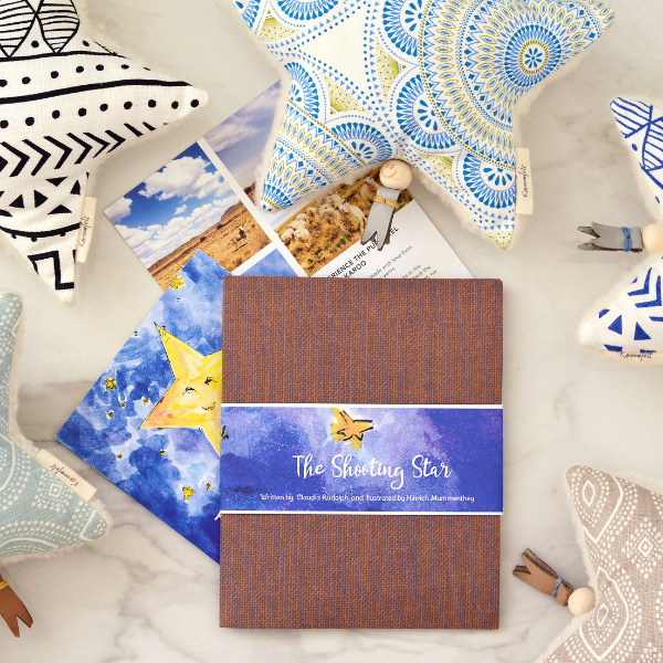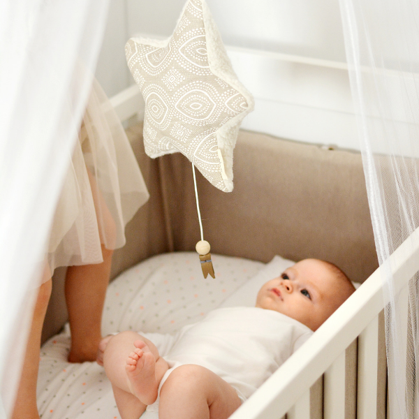 Who’s singing to the moon? It’s starlight the shooting star, made from local soft cotton fabric, wool backing and stuffed with merino wool. He has a cotton fastener at the top for easy hanging. Pull the music box cord for the soothing tune to help your baby relax or fall asleep. The music box fits inside a locked zipper pouch for safety and can be removed for washing.
