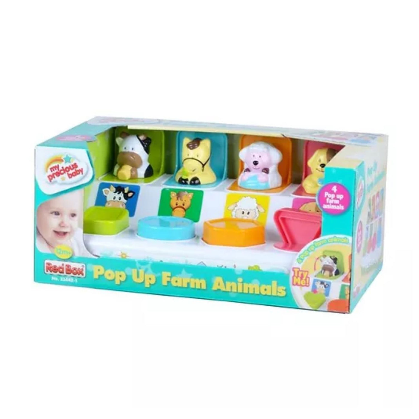 One of the many products available from the My Precious Baby pre-school range. The multicoloured Activity Pop-up Farm will provide lots of entertainment for small children. With four different farm animals, cow, horse, sheep and dog, each animal pops up when the relevant coloured cube is pressed or turned. The perfect toy to keep little ones entertained and is ideal for helping to develop manual dexterity and eye coordination as well as, learning different shapes and colours.