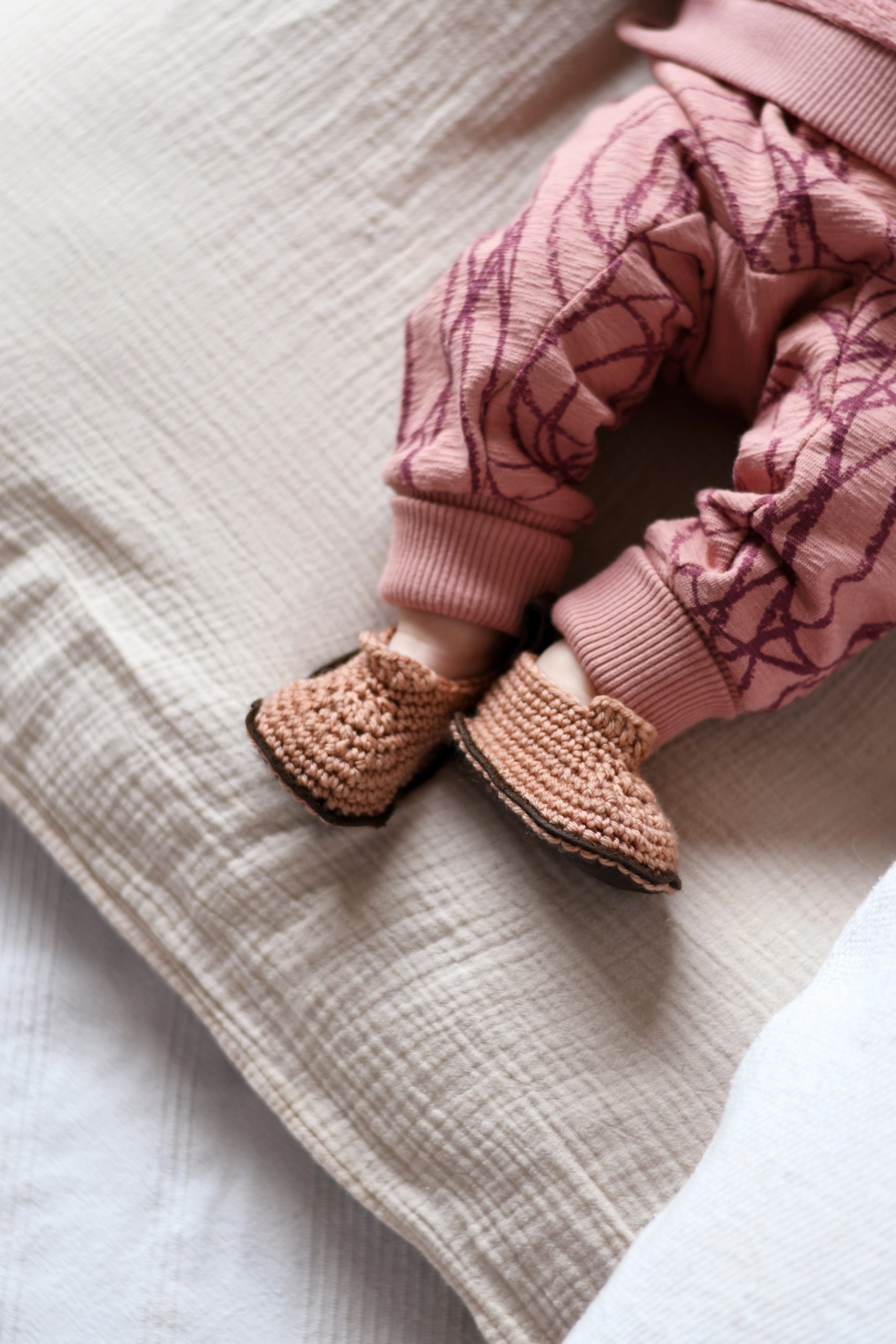 Please note all our bootie soles are individual in leather colour as we up-cycle donated leather off-cuts and match them to the respective wool. We do this to use every little bit of excess material, so it does not end up in a landfill. So by buying our booties you do not only purchase a perfect present for little baba, but also contribute to the environment.