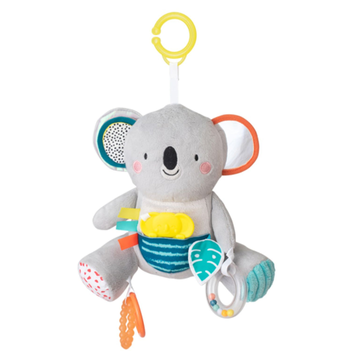 - A soft toy and teether filled with textures, patterns and sounds! Little hands stay active as baby explores rattles, crinkles and more.