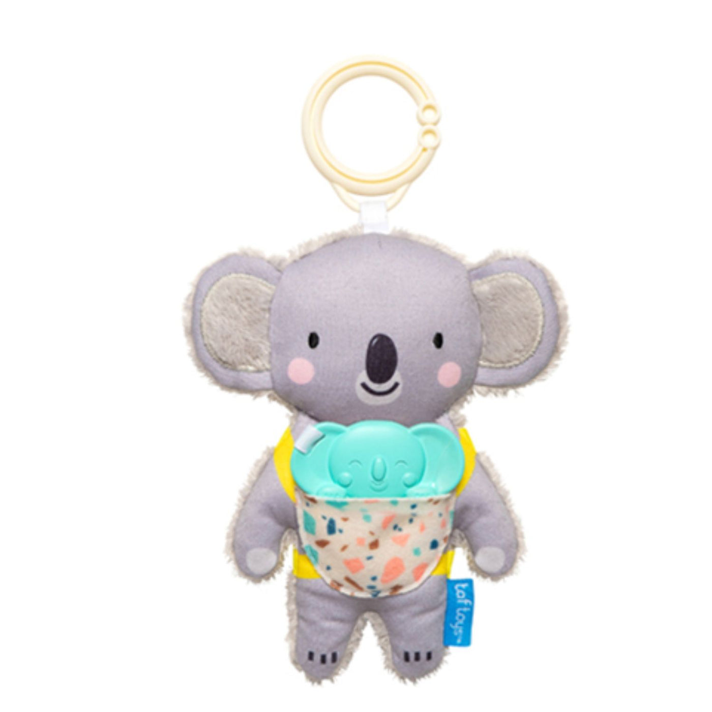 - Soft activity toy with soft rattling sound and crinkly fluffy ears. Comes with baby Joey teether cuddled in his mamma’s play pocket