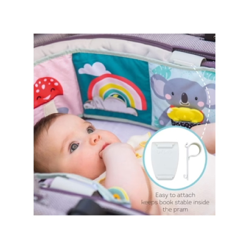 - Comes with 2 plastic clips to keep the book stable inside the pram while out & about – there are three attachment options.