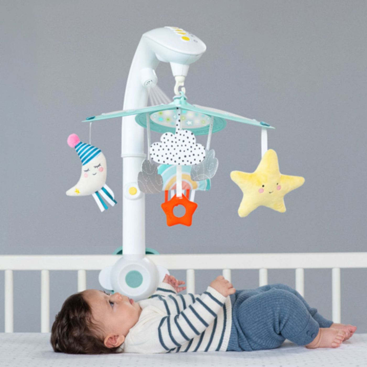- Soothe your baby to sleep with up to 30 minutes of beautiful non-repeating classical melodies, especially edited for babies. This stylish cot mobile has a boutique look, which will fit perfectly into any modern nursery, whilst providing lots of fascinating sounds, movement and lights to captivate and stimulate your baby.