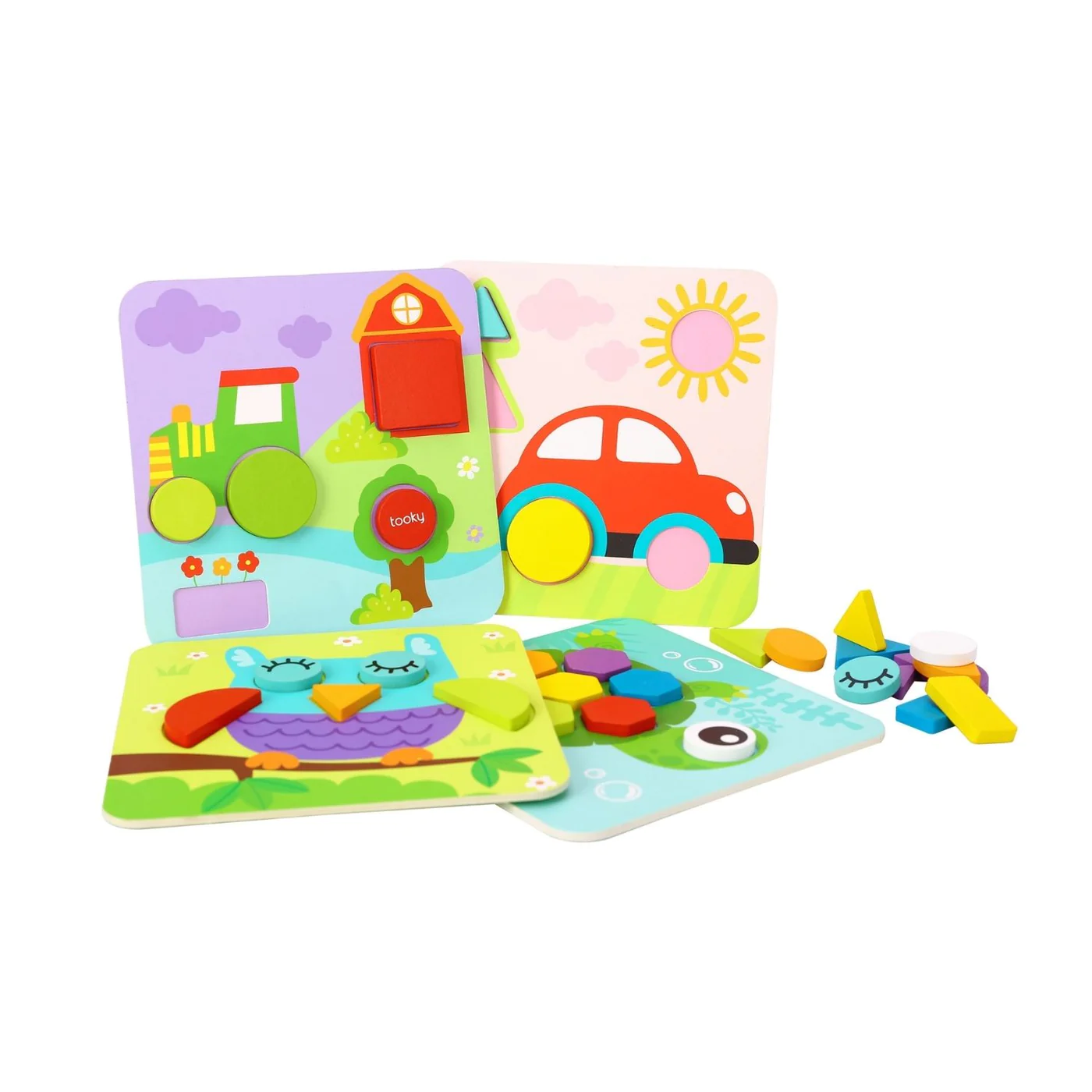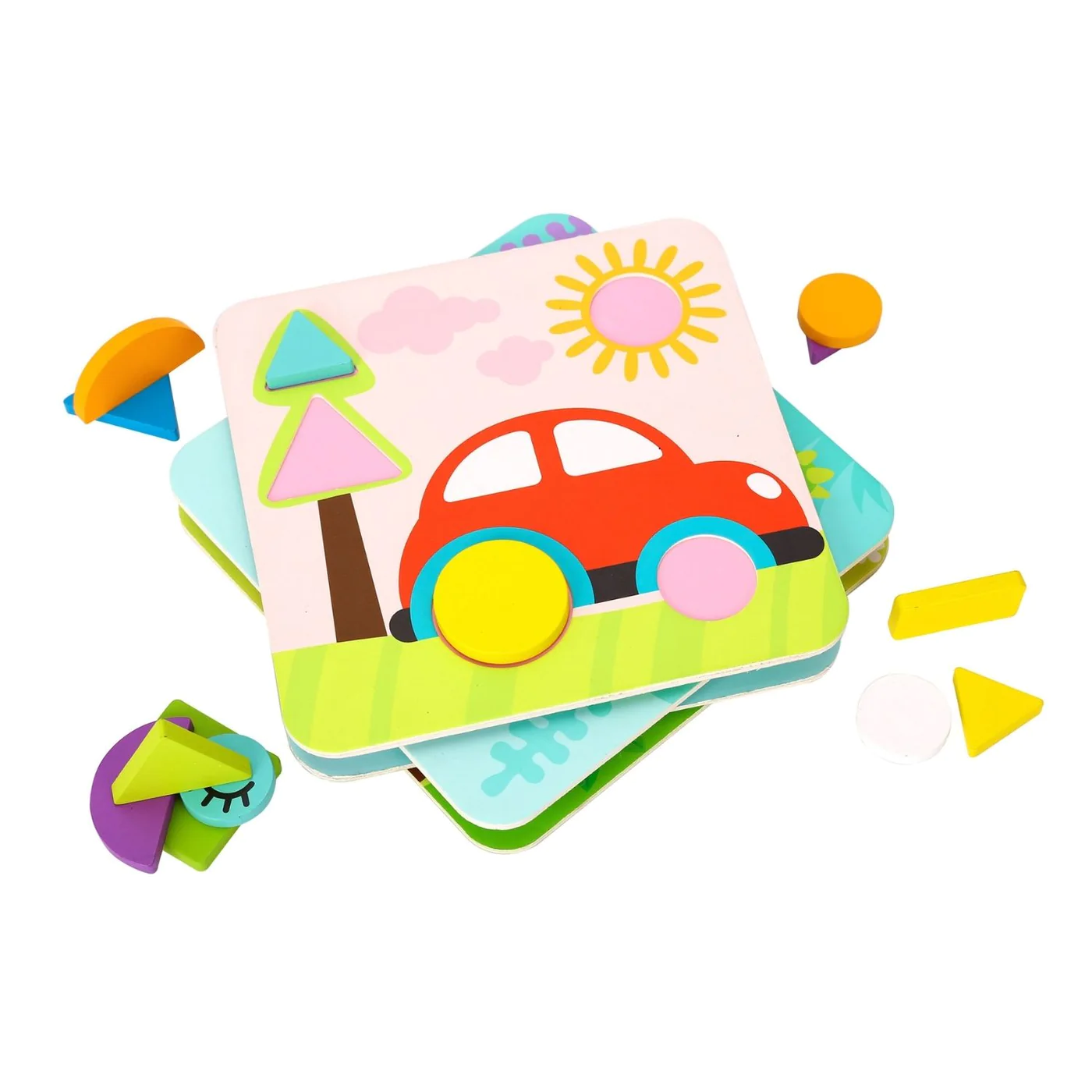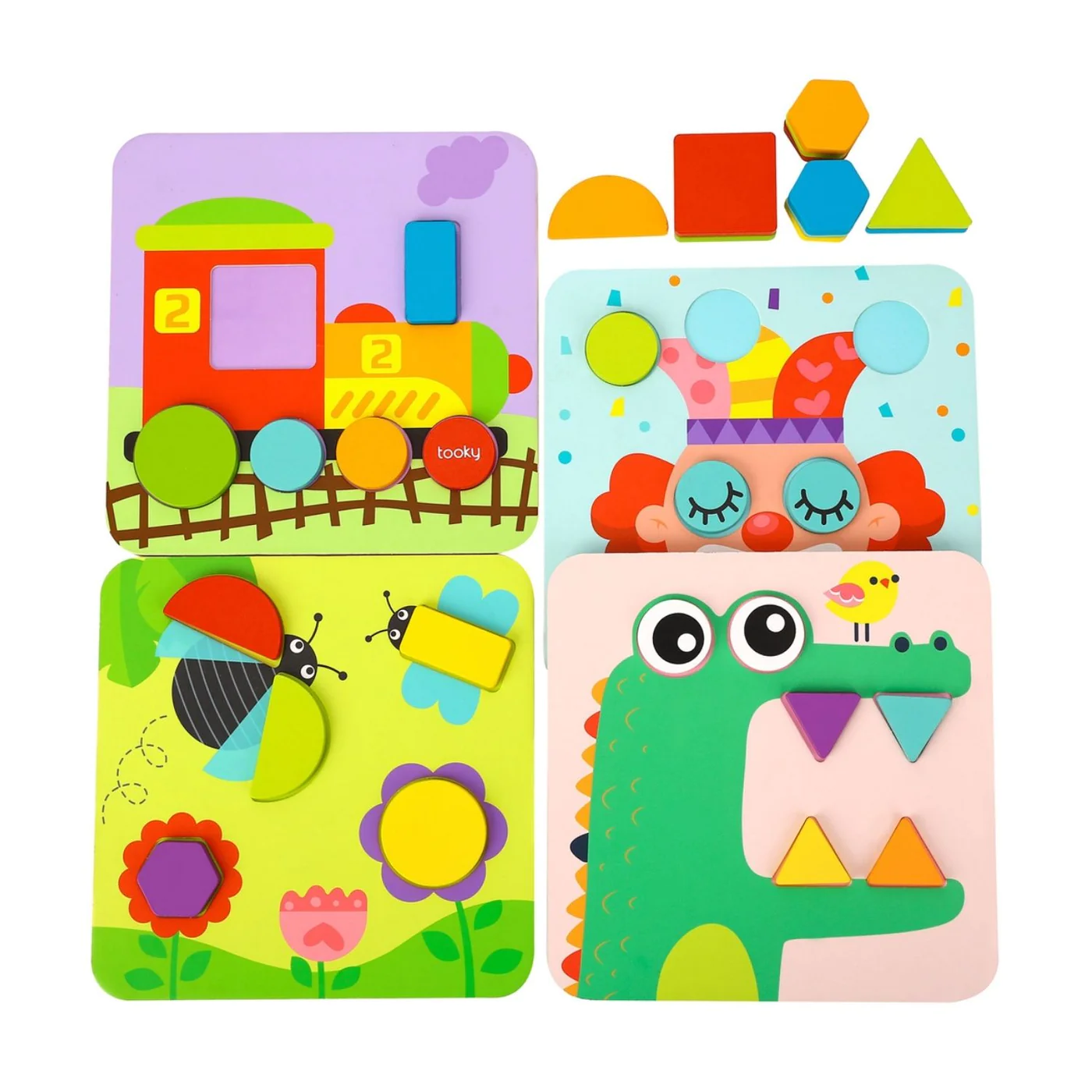 Inside this beautiful box are 4 shaped puzzles. Different shapes have been cut out from these pre-printed cardboard puzzles. A wonderful simple board that helps little ones to learn shapes and colours with ease. Promotes fine motor development and improves sorting skills. Guaranteed to keep young minds fully engaged with all these different shapes and vibrant colours.