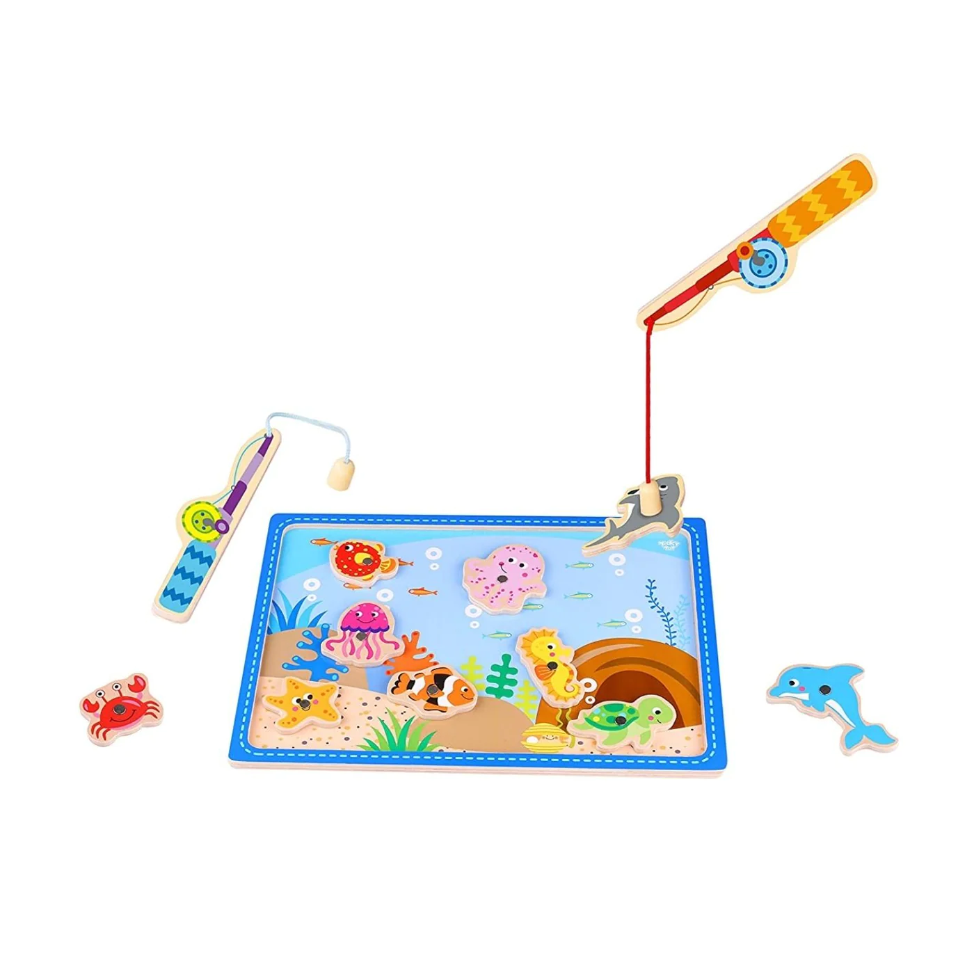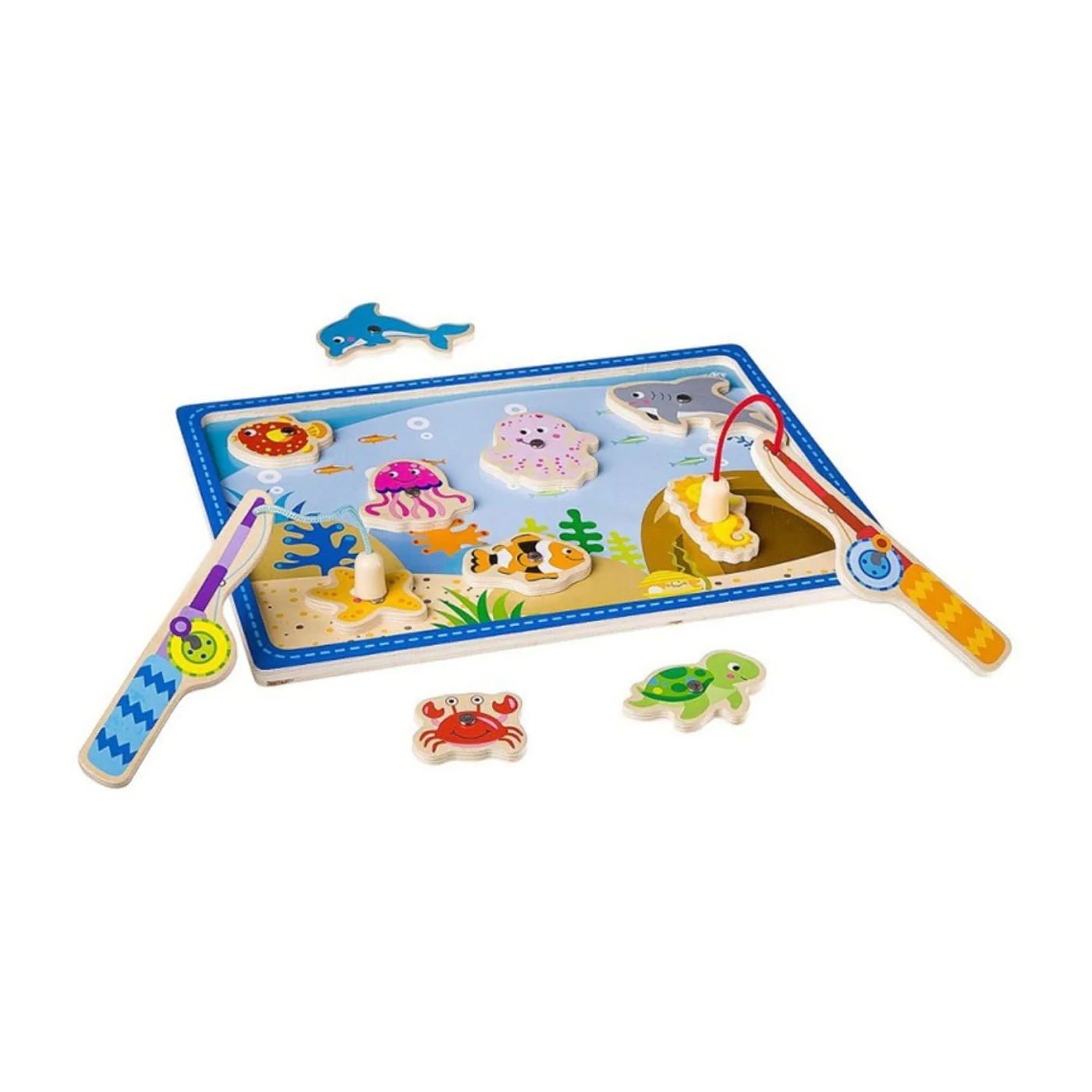 - The ultimate catch-and-release fishing game, this magnetic wooden puzzle game features aquatic animal artwork. Use the magnetic fishing pole to “catch“ the 10 colourful sea friends from the game board, then enjoy the challenge of returning them to the depths!