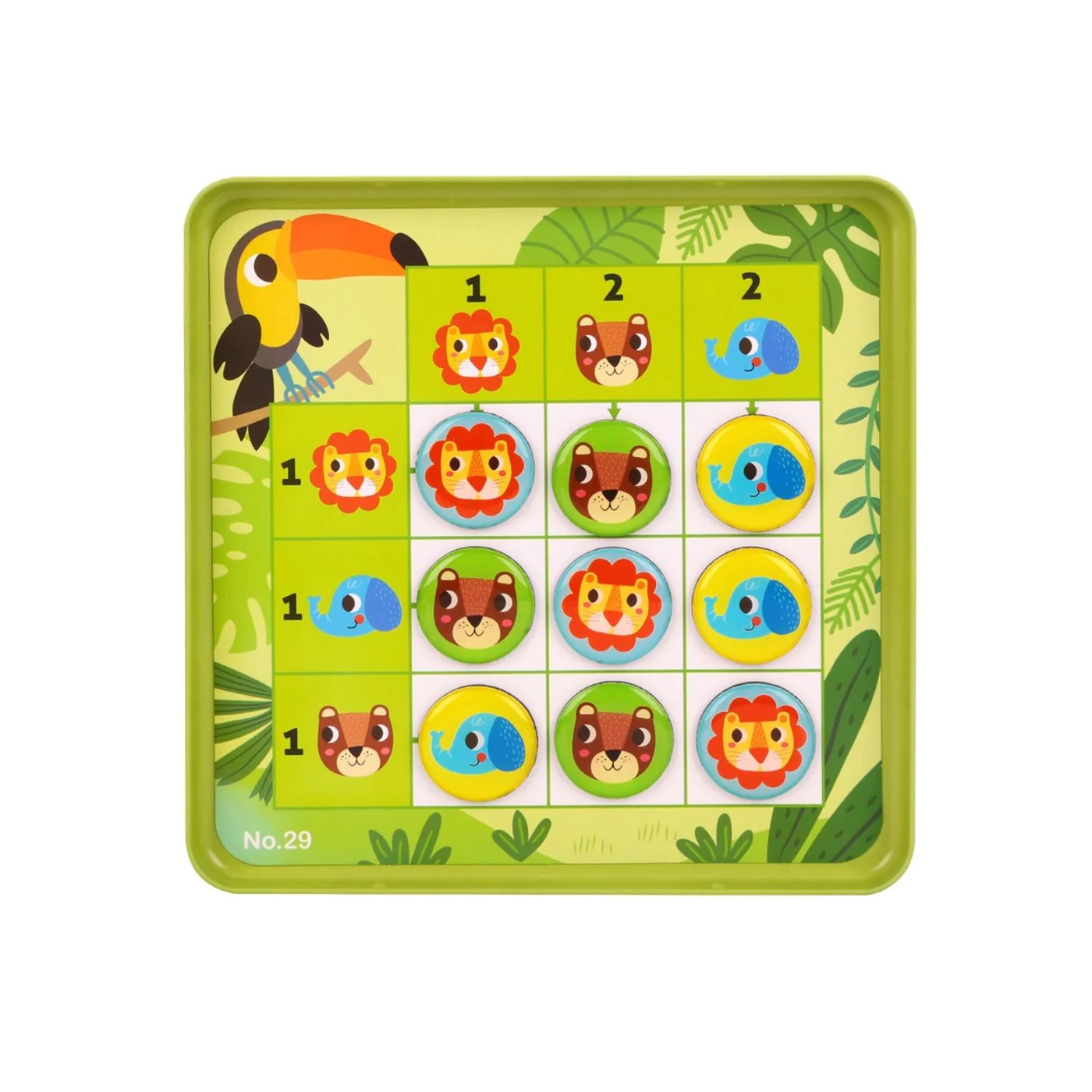 A kid’s version to the traditional Sudoku game. Inside each forest themed tin are 15 printed double side card, 9 magnetic discs and an instruction booklet. The objective of the game is to fill in all 9 grids so that each row, column contains all 3 forest animals. An excellent game offers good exercise and stimulation for the brain