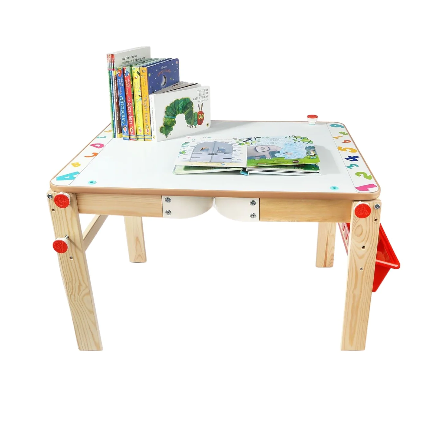 The height of the art table easel for kids can be adjusted between 40.5 inches and 45.5 inches, The height of the art table easel for kids can be adjusted according to the age of the kid.