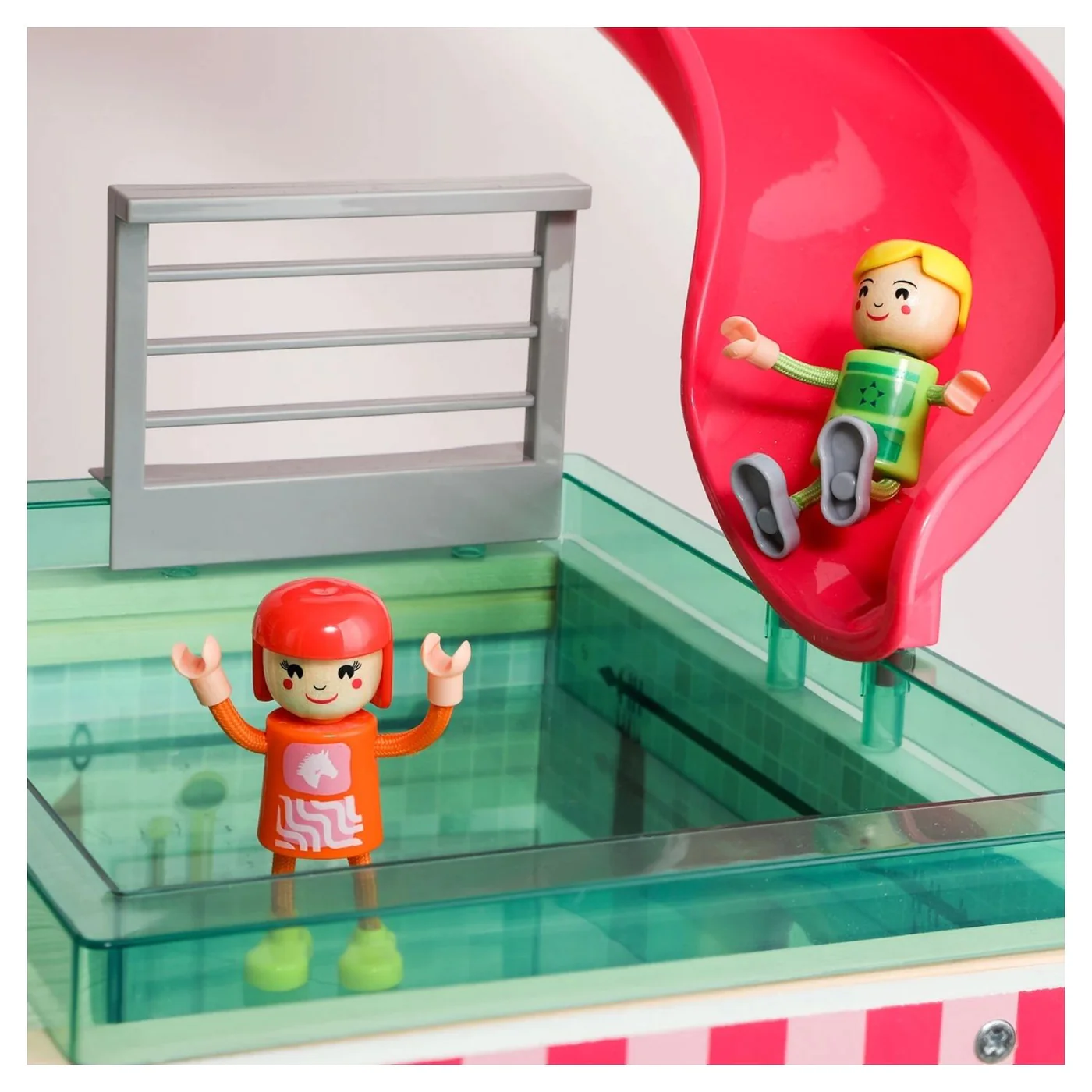 The beautifully crafted Doll House consists of 3 levels, 4 rooms, a balcony, and a swimming pool.