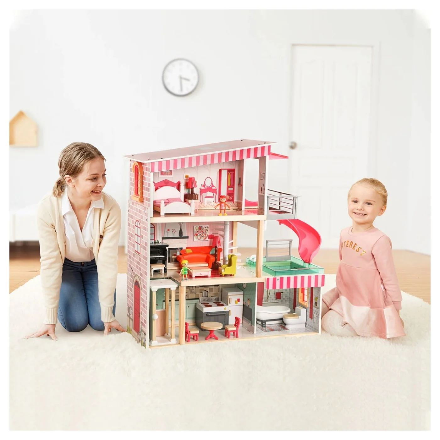With 18 pieces of furniture and 2 dolls, this dollhouse satisfies every child’s princess dreams and allows for hours of creative and imaginary play.