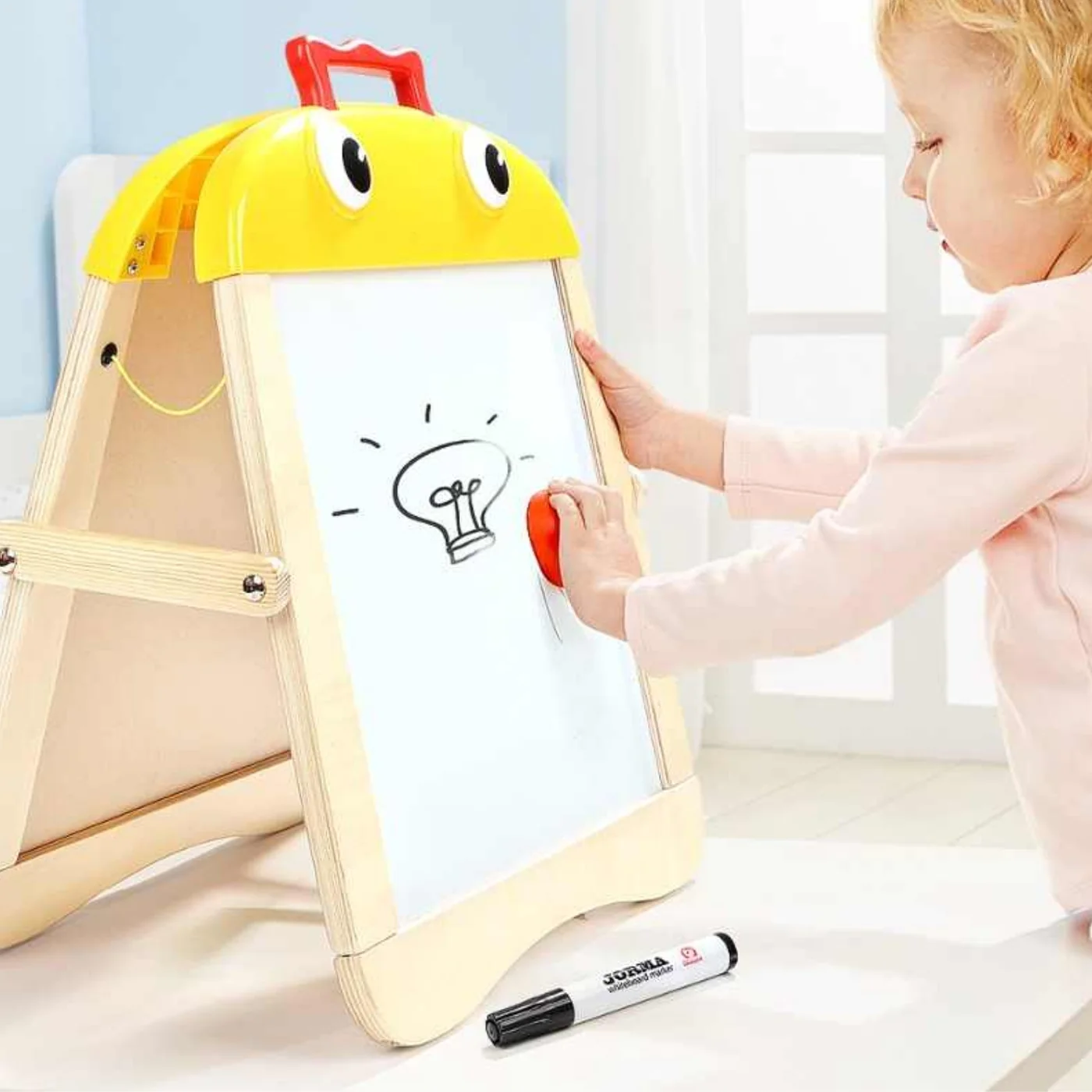 A well-designed blackboard/whiteboard that looks like a chicken! Made from the finest high-quality wood the Portable Chick Easel can be double up as a magnetic whiteboard. Comes complete with a whiteboard marker, chalk, and a duster. Large in size, it’s highly mobile and it sports a trendy red carry handle.