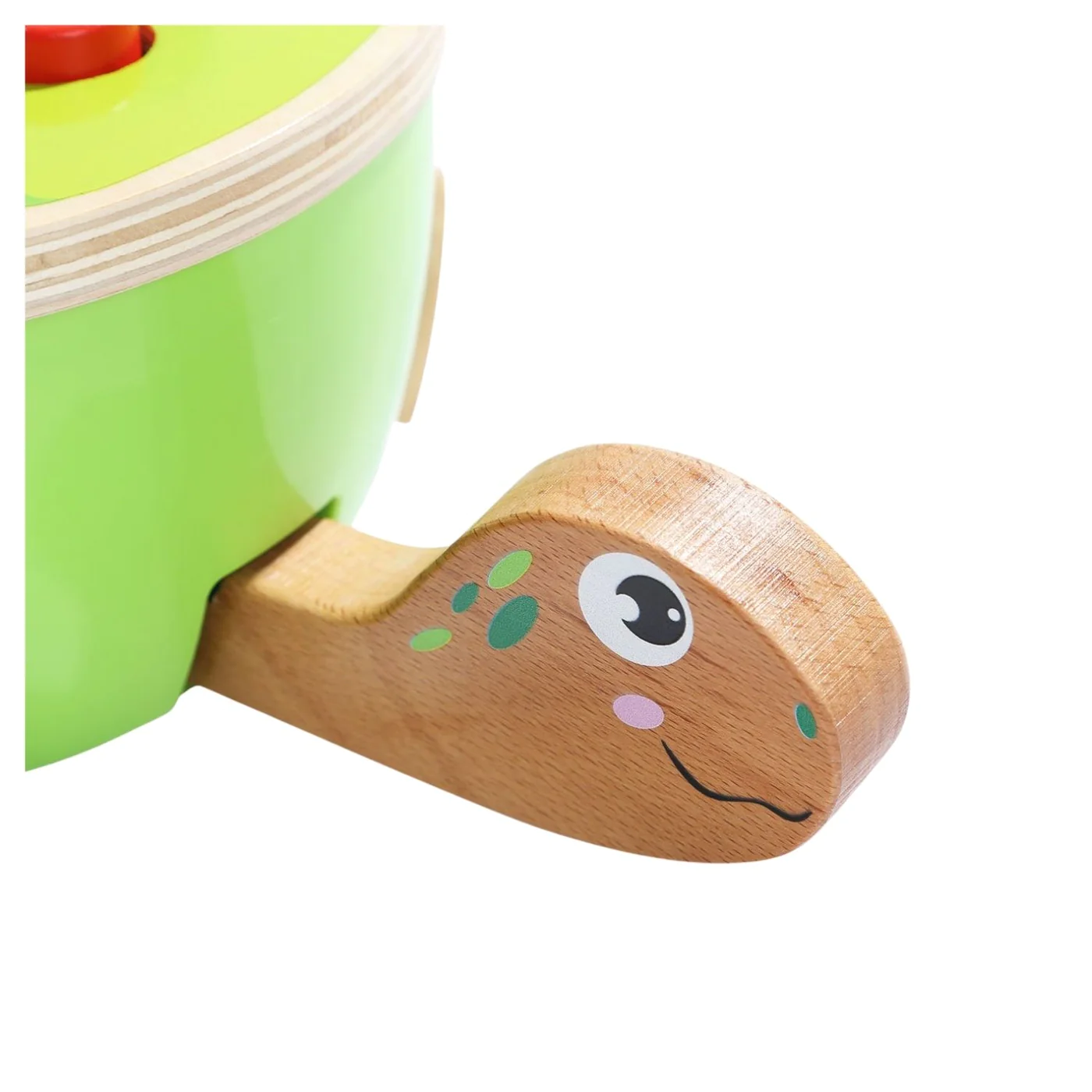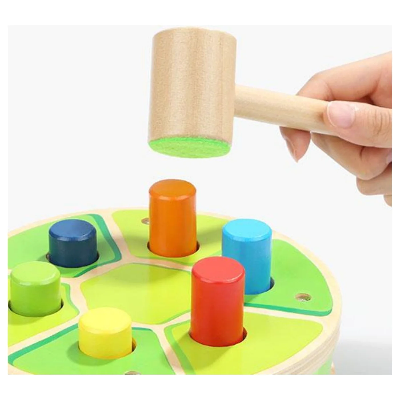 Baby holds the wooden toy hammer to strike the colorful non-removable wood pegs, as the pegs go up and down, turtles’ head, tail, and legs will pop up. can easily attract little ones’ attention and offer them enormous amounts of fun with the wooden baby toys.